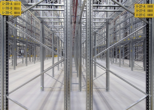 Конструктор Дания предоставила в общей сложности 18,430 паллет позиций. Каждая стеллажи полочные универсальные имеет грузоподъемность 1000 кг. Установка давала хранения поддонов с разных высот, начиная от 1400 мм до 2500 мм. Стойки тяжелые долг и 11500 мм. Высота до первой опорной уровне 2,630 мм, что требует использования балок коробчатого сечения тяжелых на низкой опорной уровне сборный складской стеллаж. Верхняя опорная уровень находится на высоте 11,230 мм. Стойки содержать 5/6, поддерживающие уровни.