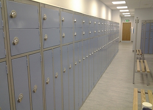 И мужские и женские раздевалки оснащено двух человек шкафчиков хранения. Два человека кабинки для экономии места для 2-х пользователей, имеющих вертикальный висячий отсек, а также личного владения отсек в верхней части каждого шкафчика. восемь дверей шкафчиков были установлены в одном месте для хранения персонала мобильных телефонов, сумок и кошельков.